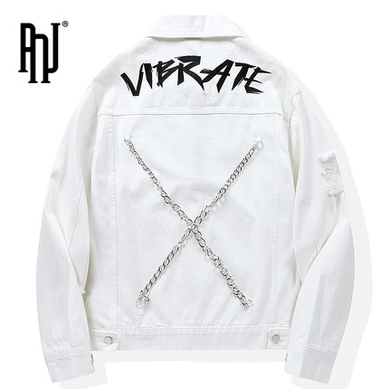 Pnj&vibrate co branded denim jacket men's fashion perforated design jacket