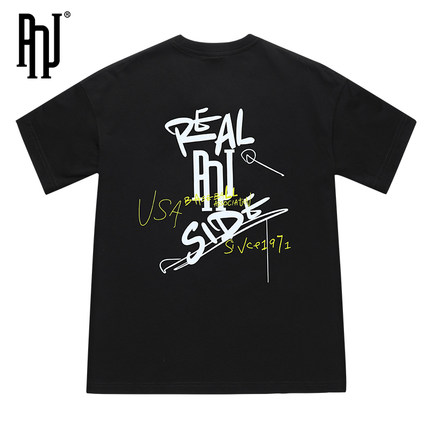 PNJ funny letter graffiti short sleeve T-shirt women's and men's half sleeve fashion card
