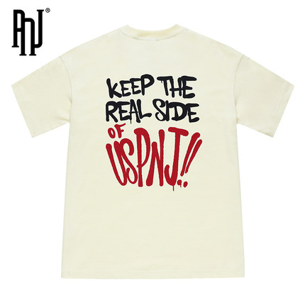 PNJ apricot short sleeve T-shirt sports trend graffiti print lovers loose half sleeve