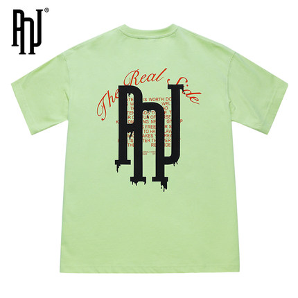 PNJ字母短袖t恤女男2022新款情侣装白色圆领棒球协会运动半袖潮