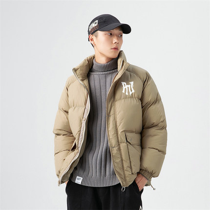 PNJ潮男士冬季羽绒服外套时尚字母印花连帽加厚保暖情侣冬装上衣