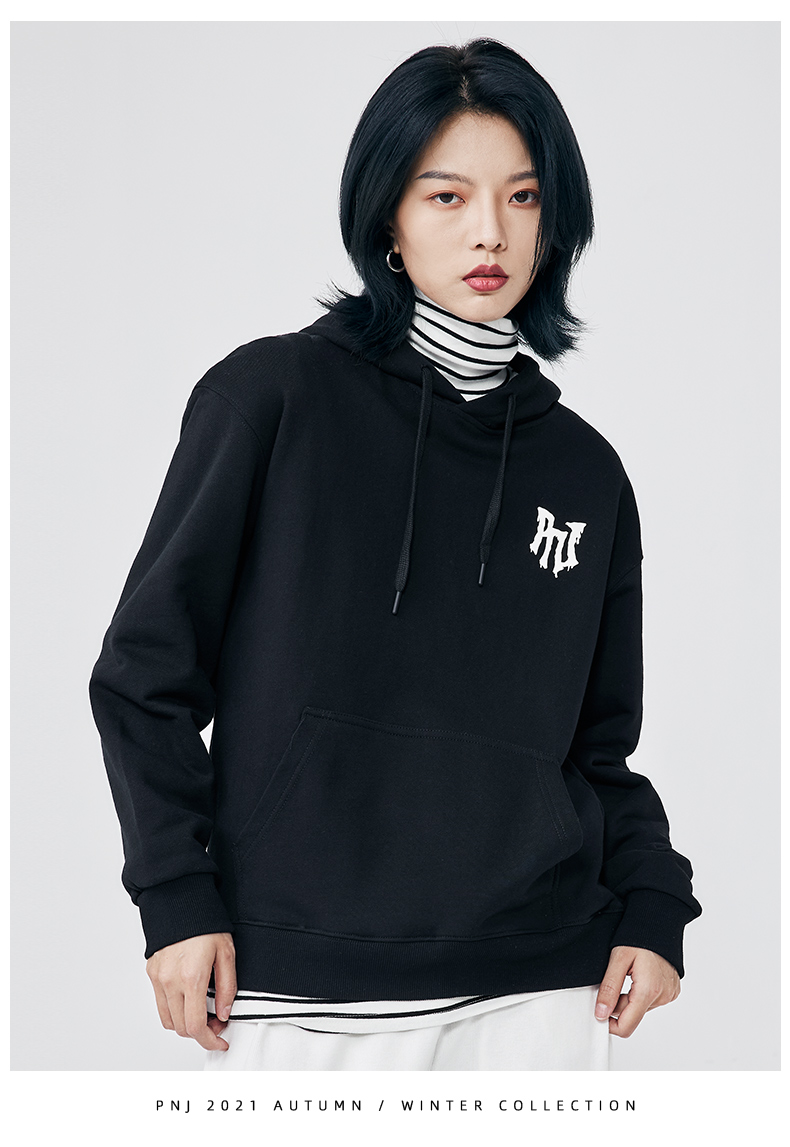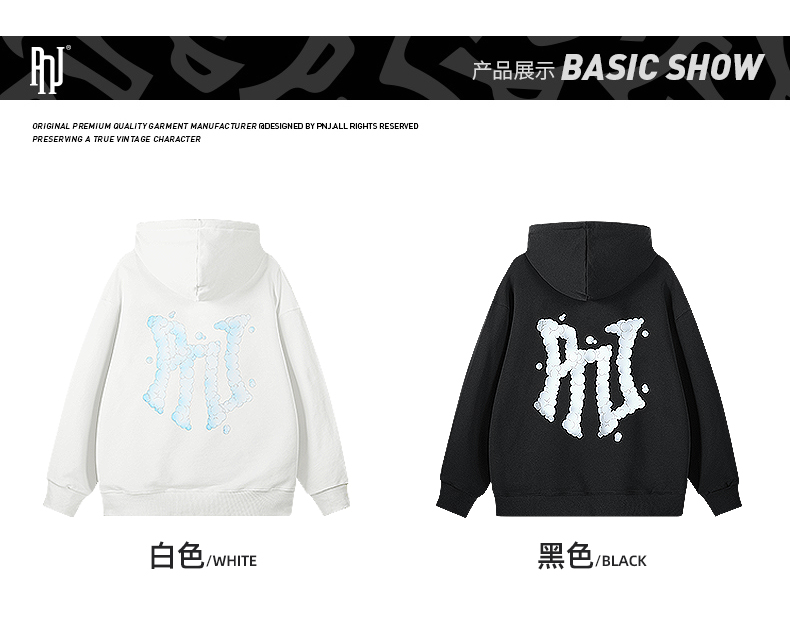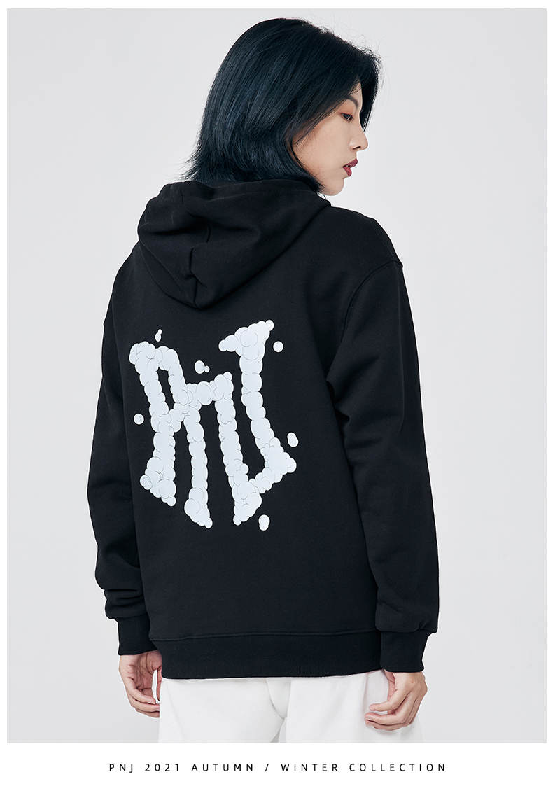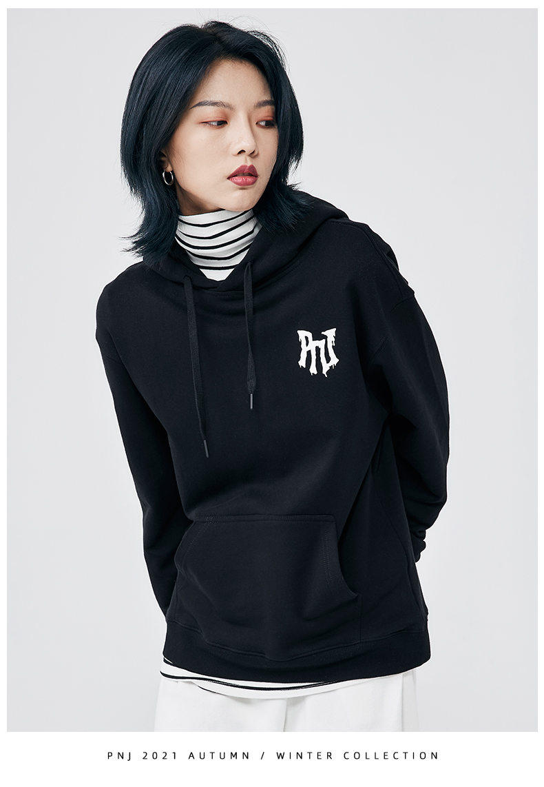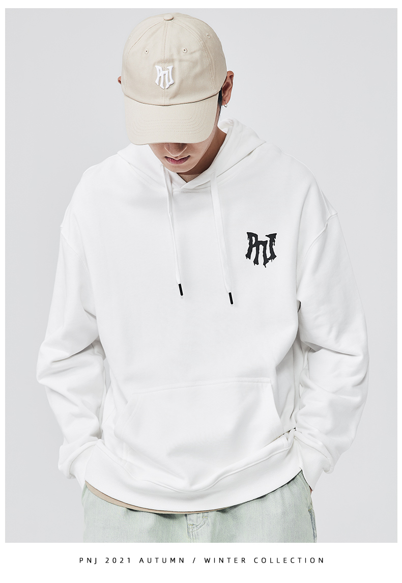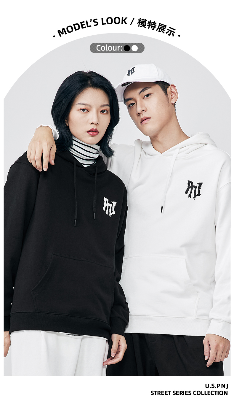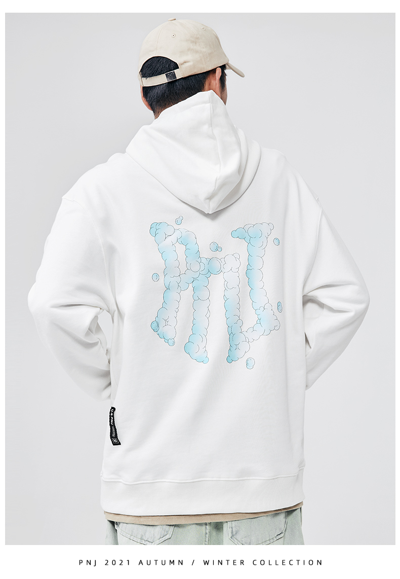 PNJ连帽卫衣女2022年春季新款潮牌ins白色情侣装宽松oversize上衣